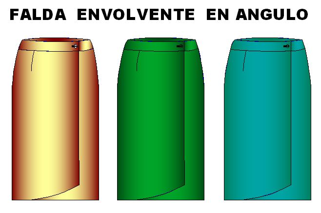 Moldes de falda estilo envolvente en angulo.