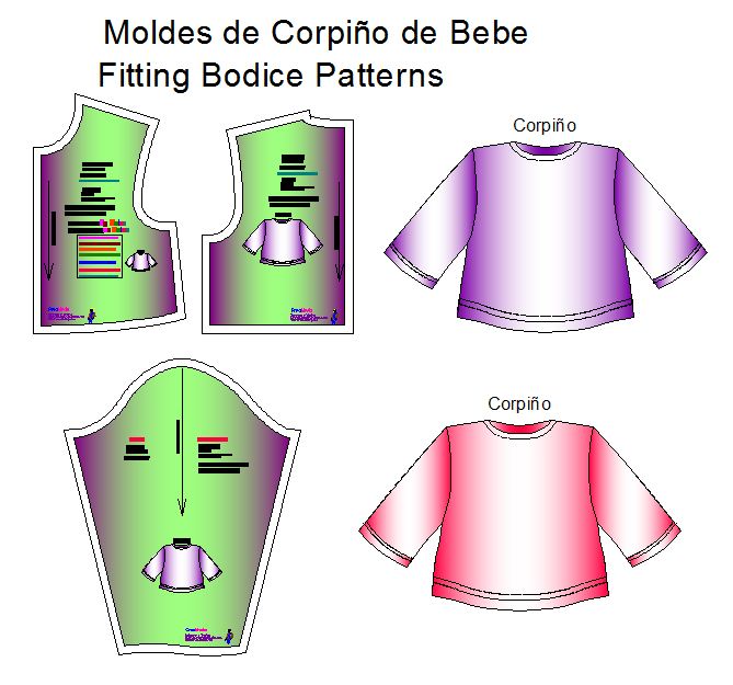 Patrones para confeccionar Corpiño de bebe en 7 tallas.
