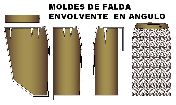 Patrones de Falda Estilo Envolvente en Angulo.
