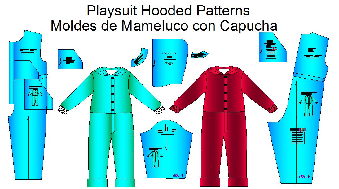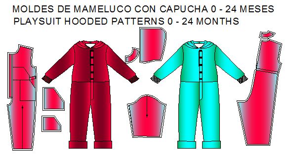 Patrones para confeccionar Mameluco Manga Larga de Bebe en 7 tallas.
