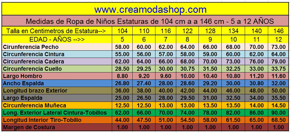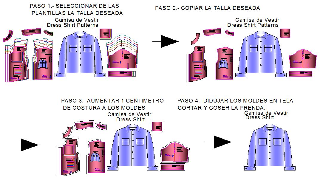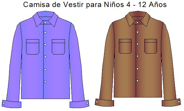 Las plantillas de moldes de Camisa de Vestir Infantil te permiten confeccionarlas en las 8 tallas infantiles para niños de 5 a 12 años: