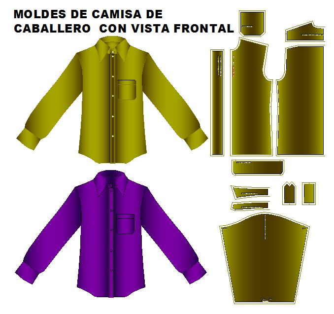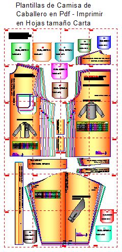 Las plantillas de moldes de camisa para caballero se te envían en formato digital Pdf para imprimir en varias hojas tamaño carta las cuales armas para obtener los moldes completos en tamaño real.
