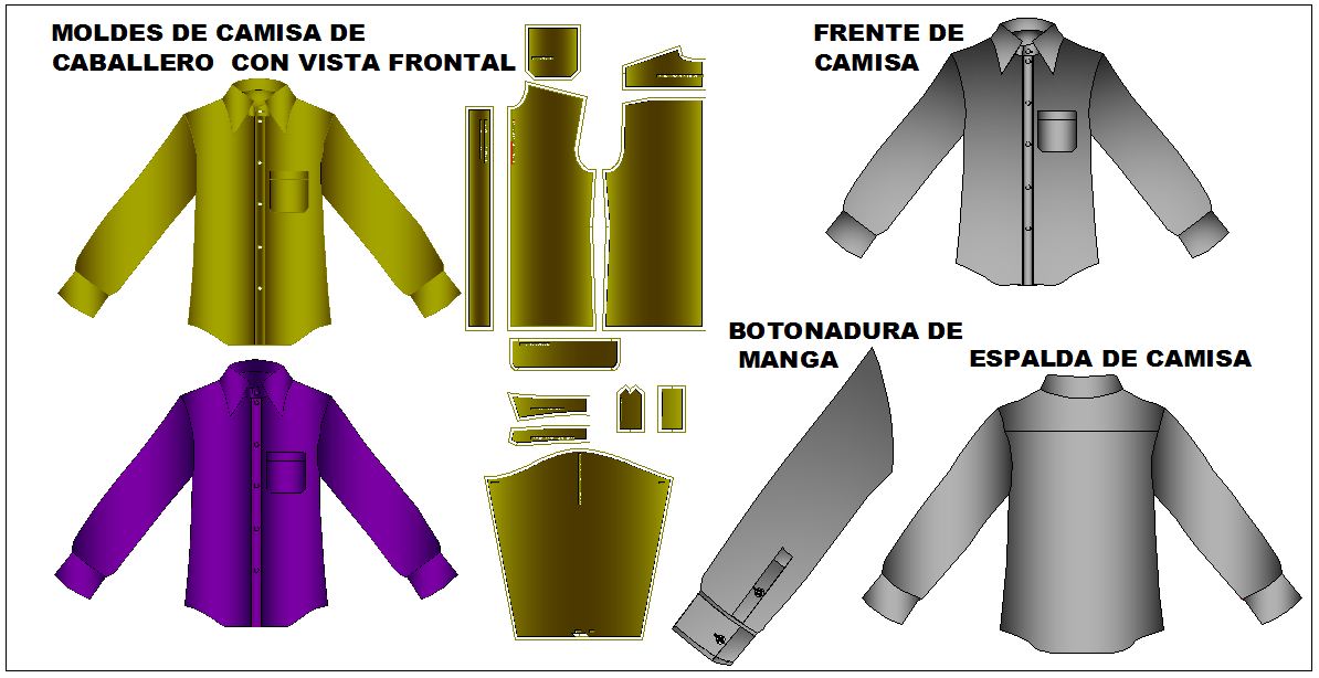 Los detalles de los moldes de las plantillas de este modelo de camisa de caballero puedes verlos a continuación: