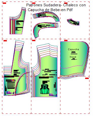 Las plantillas de Moldes de Chaleco con Capucha de Bebe te permiten confeccionar este modelo en 7 tallas: