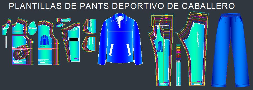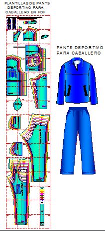 Las Plantillas de moldes de pants deportivo de caballero Chamarra o Sudadera y pantalón se te envían en formato digital Pdf para imprimir en varias hojas tamaño carta las cuales armas para obtener los moldes completos en tamaño real.