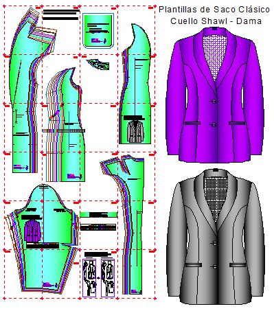 Nota importante.- Las plantillas de este modelo clásico de saco incluyen las mangas con corte sastre lo cual le da mayor elegancia y originalidad a este modelo clásico en las mismas 11 tallas.