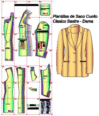 Las plantillas de moldes de saco estilo sastre para dama se te envían en formato digital Pdf para imprimir en varias hojas tamaño carta las cuales armas para obtener los moldes completos en tamaño real.